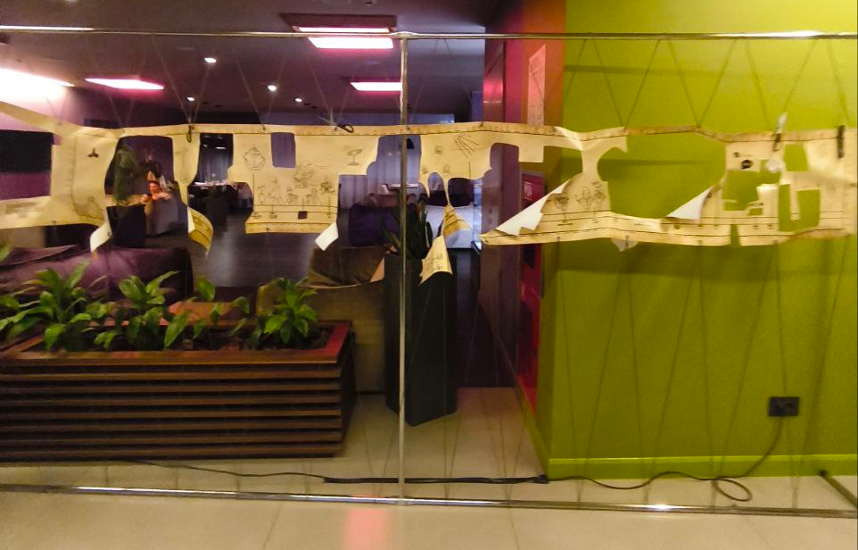 Под конец дня мы развесили ножницы/ножи, чтобы каждый желающий мог отрезать себе понравившийся кусочек и унести его домой. Эдакий кастомный артефакт с митапа, который останется только у вас.