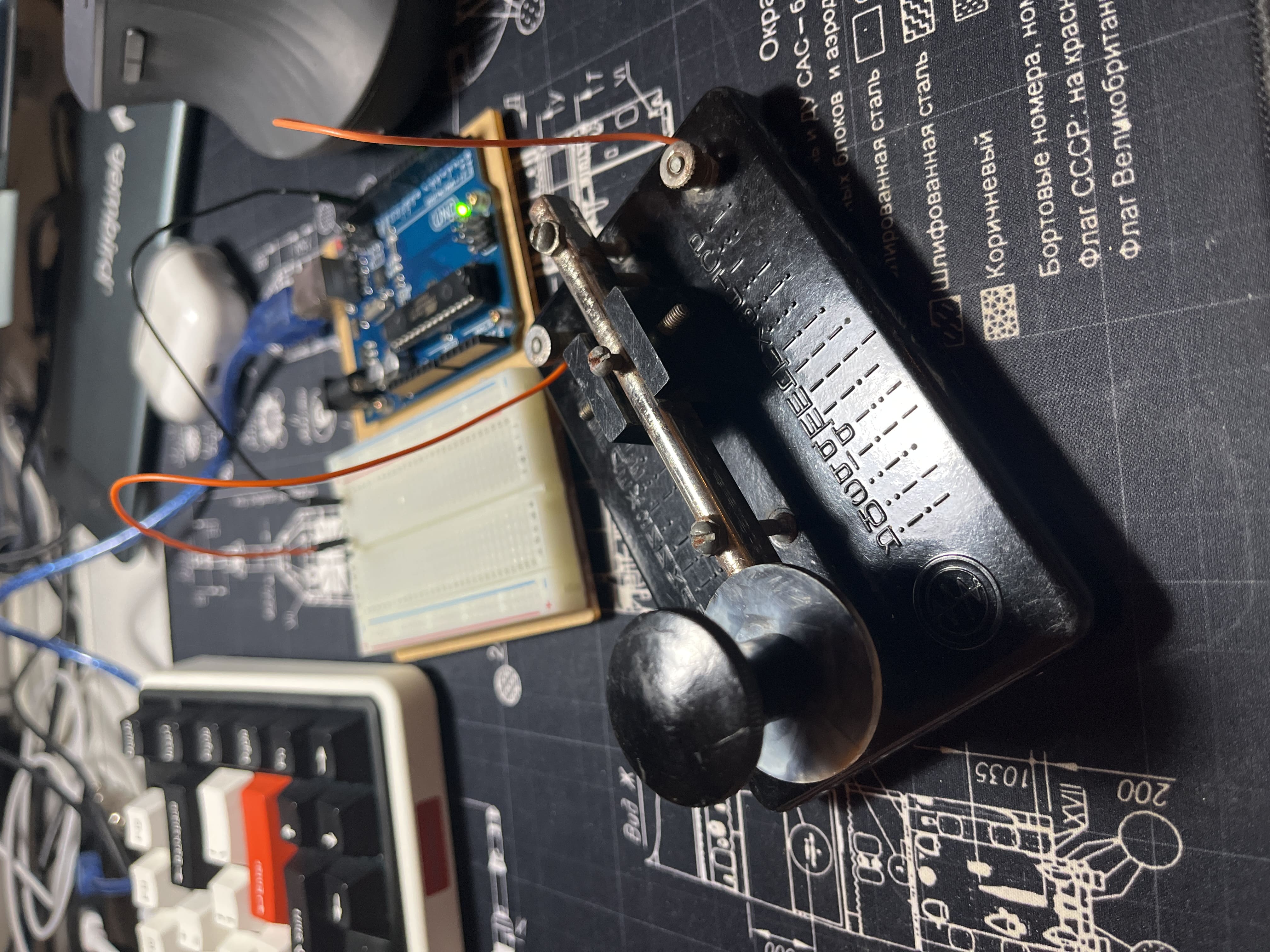 - Конечно же сам ключ! Одной рукой придерживаем, второй набиваем, т.к. он не был никак закреплен. Его следовало прочувствовать, иначе был шанс продолбать точку/тире из-за неуверенного нажима и потерять драгоценные секунды.
